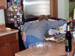 Mom walking out to the mailbox in her bathrobe.
